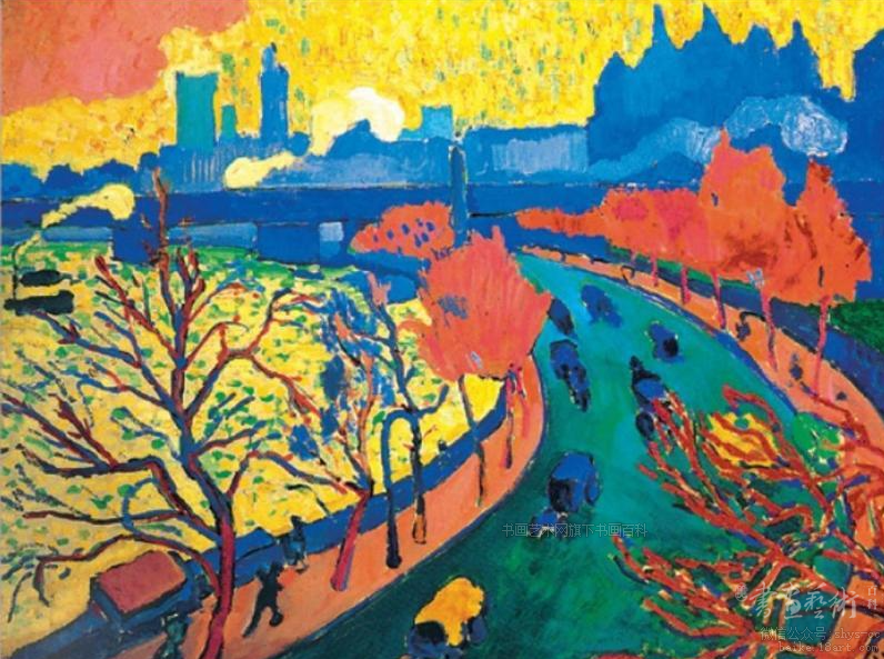 安德烈·德朗(1880.6~1954. 9)出生于巴黎附近的夏杜(Chatou),父亲是当地一名糕点师,还是本地的市镇会的评论员。德朗的中学生活是在维西纳圣十字学校度过的,后因考试不及格离开了这所中学。在艺术上,他原是个维护法国传统的现实主义画家,他一直反对崇尚非具象绘画的先锋派,而投身野兽派的行列,受到马蒂斯的鼓励。最初他对凡·高、高更和塞尚也很赞赏,后又试验过点彩派的技法,甚至还一度被毕加索的立体主义所惑。读德朗的所有作品,也会发觉他在探索中的不稳定性。这幅《威斯敏斯特大桥》,正是他时断时续地追随野兽派时期的代表作。