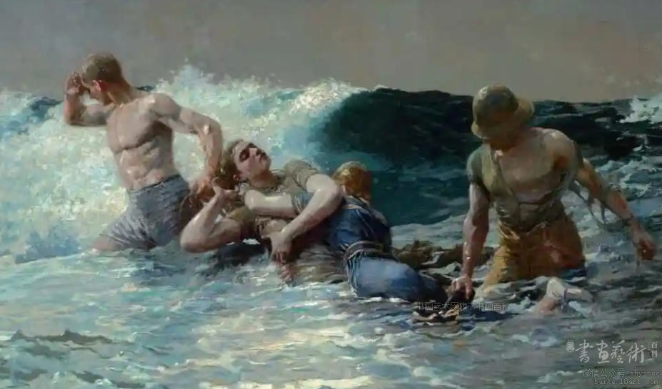 温斯洛·霍默出生于波士顿的一个中产阶级家庭。父亲是一个善良的商人,母亲受过良好教育,这使霍默从小就生活在一个艺术环境之中。早年当印刷徒工,后来霍默在纽约全国美术设计学院接受了正规的艺术教育。1857年自设画室,并经常为报刊做插图。1866年赴巴黎,此间作品常以农场、愉快的儿童、夏天的风景为主。1873年开始做水彩画,别具一格。1881年赴英国,居北海渔村,1883年返回纽约。晚年曾访问巴哈马、古巴等地。作品多以现实主义手法逼真的描绘了伐木工人、猎人、渔民及黑人的生活,后期常以雄伟的大海和暴风雨为主题,寓意深远。主要作品有《疾风》、《船舶遇难》、《伐木工》。