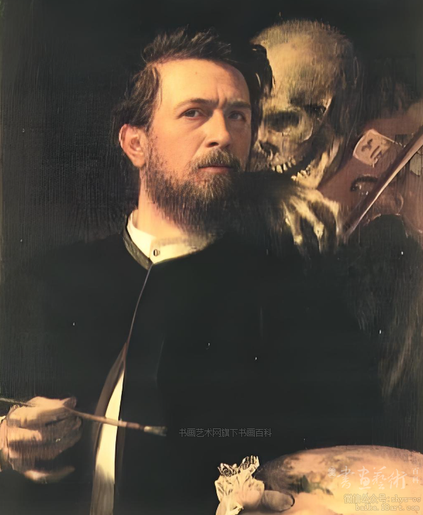 《自画像与拉琴的死神》是瑞士画家阿诺德·勃克林1872年创作的象征主义油画。这幅75×61厘米的名画现藏于国立普鲁士文化遗产博物馆,画面通过勃克林自画像与拉琴死神的组合构图,深刻隐喻了生死交织的哲学命题。该作与《死之岛》等共同构成勃克林对死亡主题的艺术探索体系,体现了19世纪中叶欧洲象征主义思潮中艺术家对生命本质的思辨。