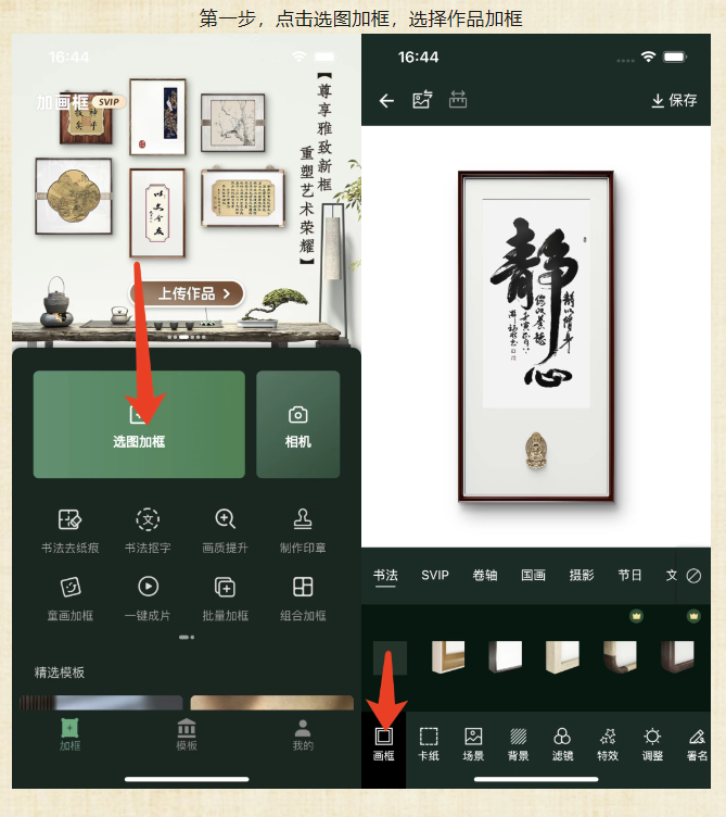 是一款为书法,国画,油画,绘画,摄影等图像作品 在线加框增色工具。