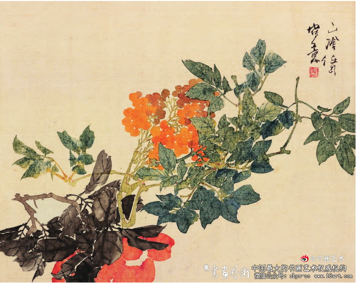 图1 清 任伯年 天竺红柿 31.6cm×39.2cm 中国美术馆藏