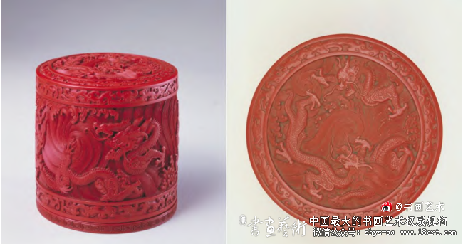 图1 剔红龙纹漆盒(通体髹朱漆,雕刻海水游龙纹饰,线条流畅,层次分明,体现了清代 雕漆工艺的高超技艺)