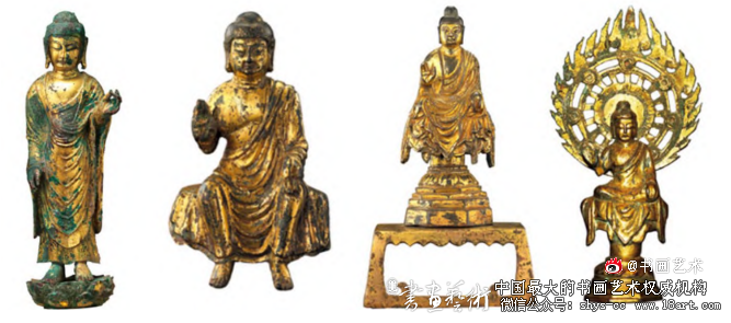 图3 唐鎏金佛像(此尊唐代鎏金佛像,面容慈祥,衣纹流畅,鎏金工艺精湛,展现了唐代 佛教造像的艺术成就和宗教氛围)
