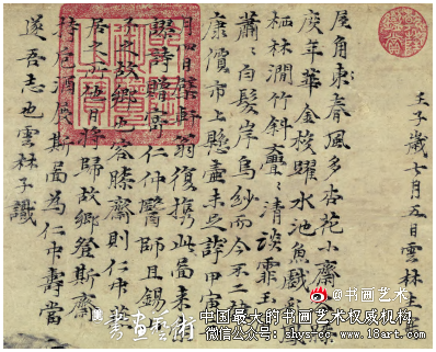 图 2ˉ 倪瓒《容膝斋图》二则题记,分别写于洪武五 年(1372)七月五日,洪武七年(1374)三月四日