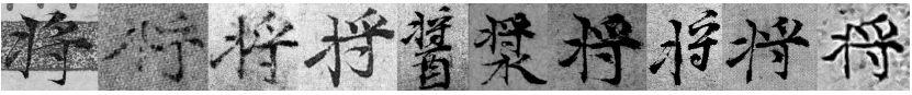 图 8ˉ“將 ”字字例。各字例出处如下。《容膝斋图》、7、13、45、54、63(2 例)、66、102、伪 8
