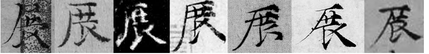 图 9ˉ“展”字字例。各字例出处如下。《容膝斋图》、2、3、53、69、79、伪 15