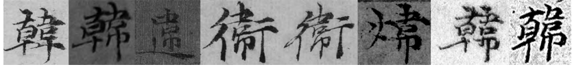 图 10ˉ“韓”字字例。各字例出处如下。《容膝斋图》、18、22、50(2 例)、63、86、101