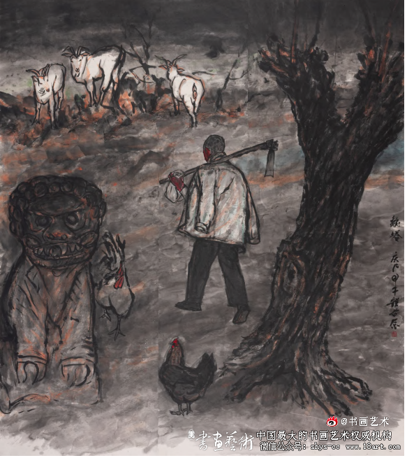 蔡元培更是激烈地说出“今日科学发达, 宗教亦无所施其技,而美术实可代宗教”的美育代替宗教 观。我们不否认《流民图》的伟大,它记录了一个民族的 苦难历史,是中国人物画迈向现实主义的里程碑之作。中 华人民共和国成立后,表现现实生活、反映时代主旋律成为人物画家的首要任务,我们在展现宏大主题的同时,往 往忽略了对“人”的关注。