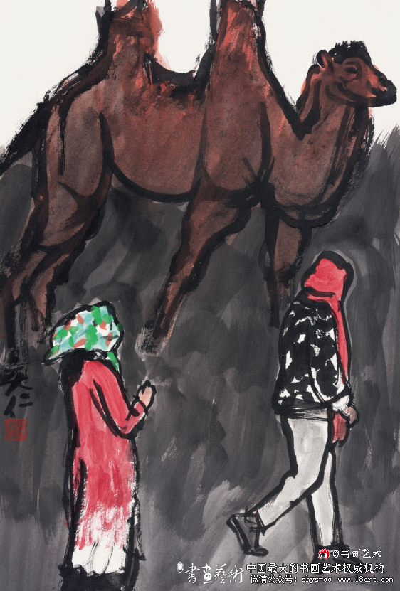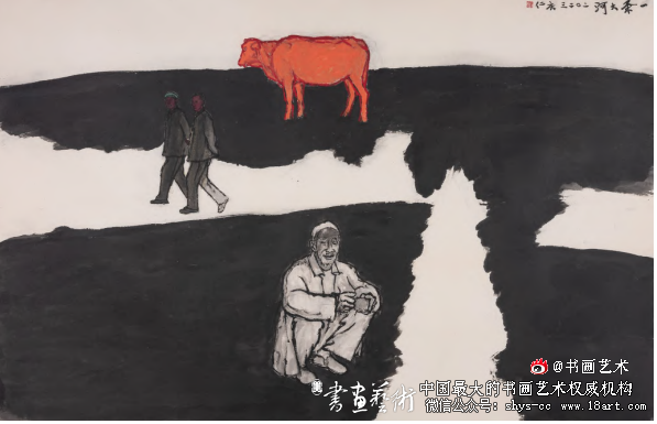 邢庆仁坚持把内心的“爱”和突发灵感作为创作的基础,在 强化写意的表达中,敢于打破常规,大胆出新。我们应该承 认,相较于西方艺术形式的发达,中国传统绘画虽然重想象 重写意,但正是因为形式的不发达,在明清陷于文人雅士无 聊时消遣的戏笔,远离现实,从而出现民国时期陈独秀、徐 悲鸿等人提出的改良国画之说,乃至到中华人民共和国成立 后,美术教学的全盘西化。邢庆仁将东方审美意趣和西方的 表现形式完美地交融在自己的作品中,他的造型语言突破了 学院派的理性制约,又没有刻意地扭曲变形,同时在陕西民 间艺术元素中汲取营养,他的笔墨强悍有力,线条粗重有质 感,极具情感张力,具有很强的个性特征。邢庆仁在中国画 艺术语言的推进上,蹚出了一条不同于古人、不同于他人的 全新之路。从这一点来看,我不想说乡土,也不想说表现, 邢庆仁的绘画承接着传统走向现代。