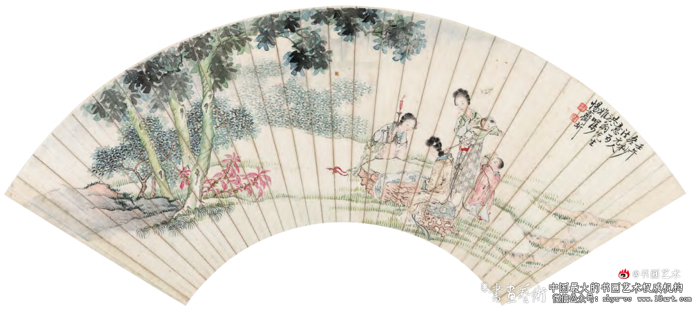 图4 清 汪圻 捣衣图 折扇面 纸本设色 16.6cm×53cm 安徽博物院藏