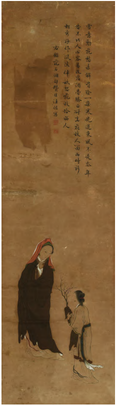 图2 清汪赞臣嗅梅图 99.5cm×27.8cm 安徽博物院藏