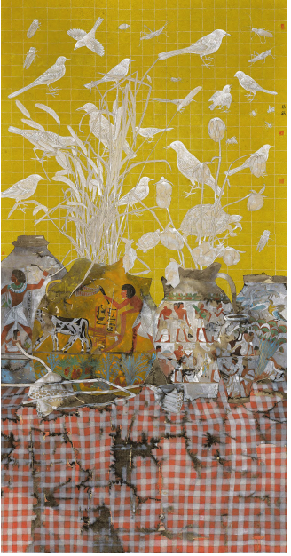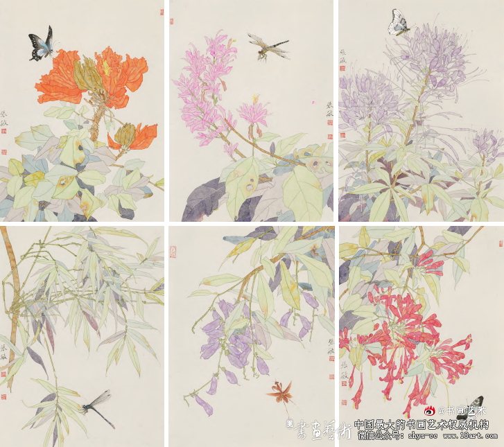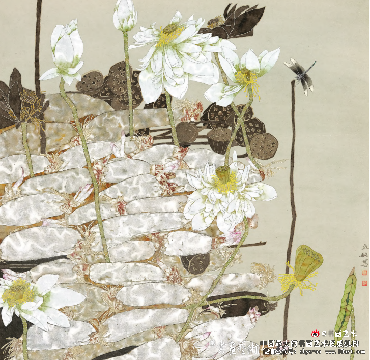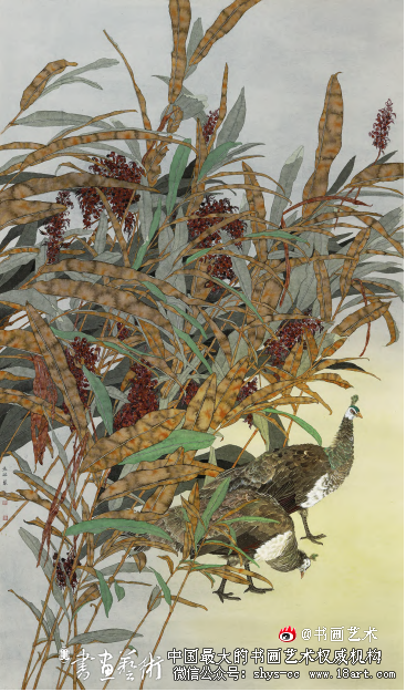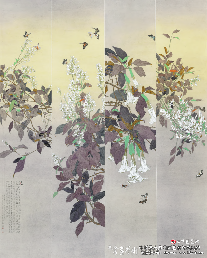 其作品《传承》既融合了中西壁画元素,也传承了唐宋以来珍禽工笔画的写实面貌,灵动的线条勾勒出栩栩如生的东西方文明画卷。其作品《蝶恋花》取一枝一叶,写形传神,顾盼灵动,使用精微的手段,通过“取神得形,以线立形,以形达意”实现静态和动态的完美统一。