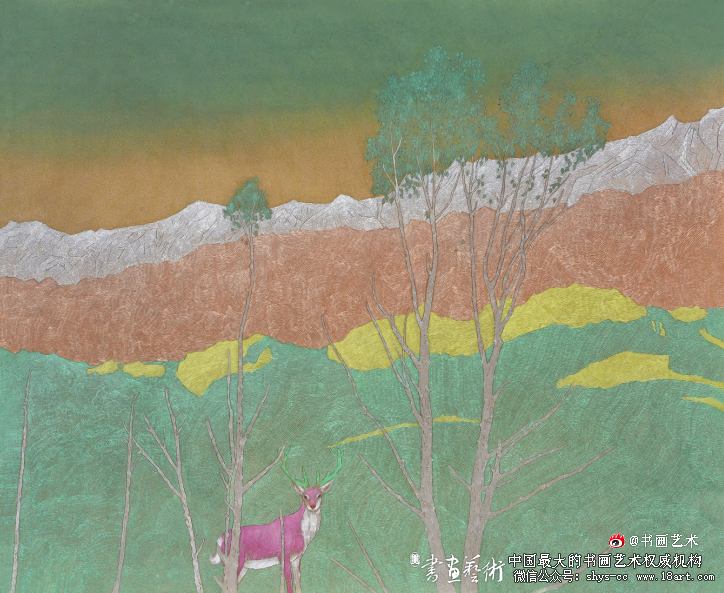 张敏的作品丰富多样,无论意境、构图,还是表现手法,都各不相同,正所谓一画一世界。比如其作品《守望》,线条概括洗练,沉凝有力,造型生动,层次分明,具有很强的艺术表现力和感染力,立意是呼吁人们去保护环境、保护动物,让人与自然和谐相处,家园宁静祥和。画面只有一只小鹿和几棵小树,小鹿眼神迷茫,凝望着远方,像是在呼吁人类不要砍伐、不要杀戮,让它们自由地生活、快乐地成长。这是一种精神写照,是一种对田园诗意生活的期盼,也是习近平总书记提出的“绿水青山就是金山银山”的生态环保重要理念的体现。