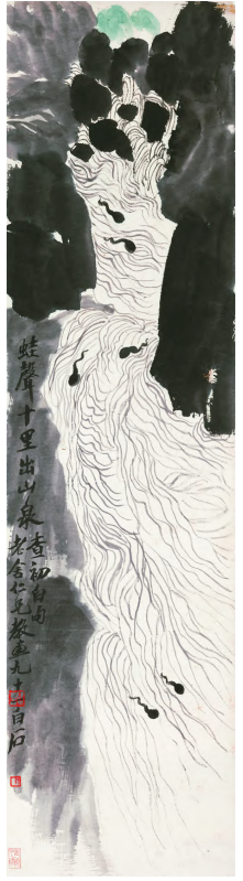 图3 齐白石 蛙声十里出山泉 127.5cm×33cm 1951 中国现代文学馆藏