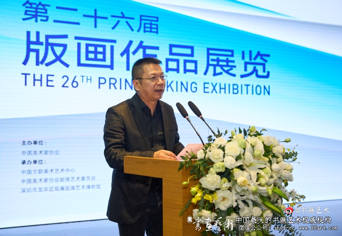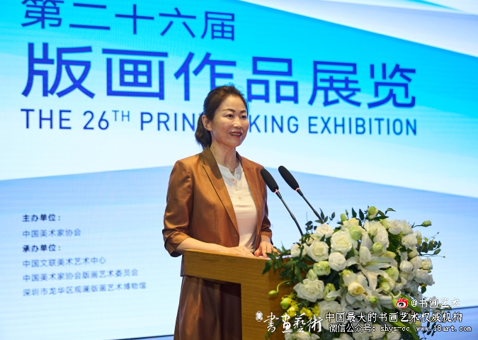 中国美术家协会副主席、广东省美术家协会主席、广州美术学院党委书记、教授林蓝以视频形式致辞。她表示,本届展览作品题材丰富、版种多样,既有对现实的深切观照,也有对艺术语言的积极探索,充分展现了新时代中国版画的创新活力与精神气象。相信这次展览能激励广大艺术工作者们更好地贯彻“两创”方针,推动中国版画不断焕发新的生机,为建设社会主义文化强国贡献美术力量。