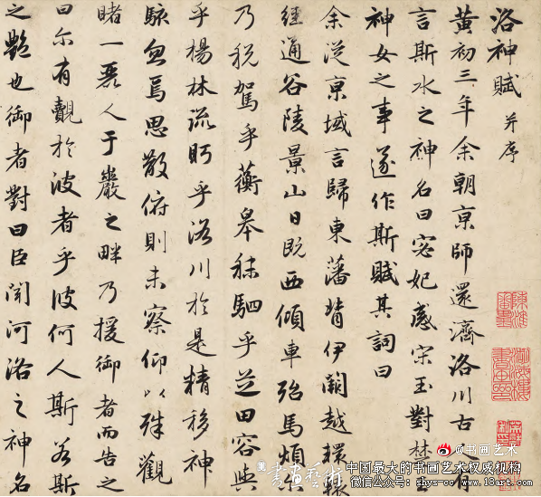 图2 元 赵孟頫行书洛神赋(局部) 29.2cm×193cm 天津博物馆藏