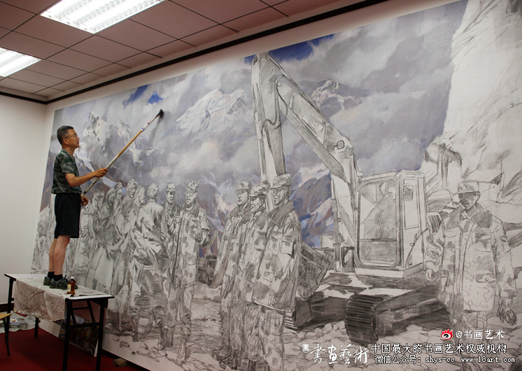 《高原守护神—郭毅力》-孙立新 300cm×800cm 油画 2017