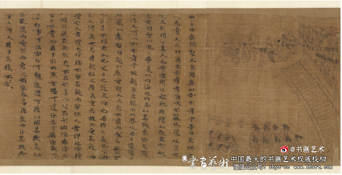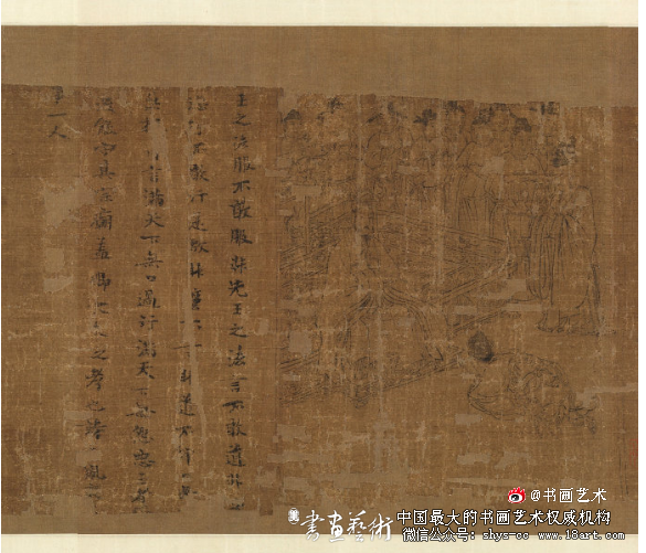 《孝经图》局部 《孝经图》卷,绢本,水墨,淡设色,北宋李公麟作,全图纵21厘米、横473厘米。其中两部分藏于美国普林斯顿大学美术馆,另一部分藏于美国大都会美术馆。 该图画面由十五段构成,图文结合,文字出自宋本《古文孝经》。据文徵明《莆田集·孝经跋》记载:画上有“绍兴”小玺,李龙眠好画古贤故事,《孝经图》也不止此而已。今传卷,末有李公麟名款...
