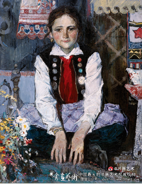 帕蒂古丽 作者:倪芳华 创作年代:1980 规格:98.5×78.5cm 材质:蔴布倪芳华,1948年8月生,女,上海人。擅长油画。作品有《帕蒂古丽》、《民族团结》、《家住白云山》等。1968年毕业于上海工艺美术学校。 曾在县文化馆、电影院工作,江西人民出版社美术编辑室美术编辑。倪芳华,1948年8...