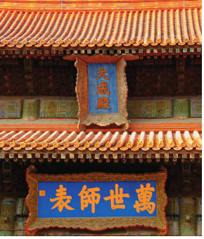 自古以来,宗庙、祠堂都表现出对先人的尊崇,作为国家体制和社会结构中的重要机构和组成部分而存在,体现着儒家文化的仪礼之美。宗庙匾额一般悬挂于建筑的主要位置,故而同样要求匾额的内容符合儒家思想,书风端雅圆润,充分体现文化正统地位。北京孔庙是元、明、清三代皇家祭祀孔子的专门场所,国子监是当时国家最高学府,其中匾额主要为帝王御书或御制,还有大量为达官显要所题。