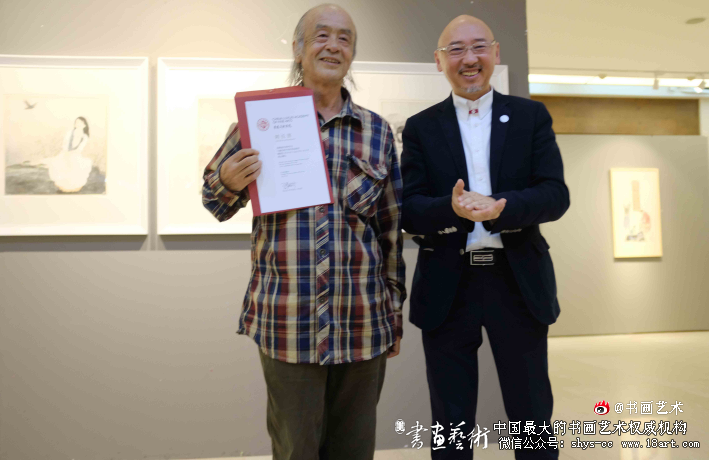 开幕式最后,李象群为沈尧伊颁发聘书,聘请老一辈连环画家沈尧伊先生为鲁迅美术学院教授,并授予鲁迅美术学院校徽。