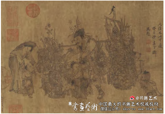 其次,宋时政治氛围相对宽松,且在隋唐的基础上改革了科举制,寒门子弟凡有才能者,皆能通过考试改变自身境地,从而跻身上流社会。宋时门阀意识相对较弱,此时的商人也拥有一定的地位。另外,宋代画院不拘一格,民间有才之人也被招揽入内,画家队伍庞大繁杂,实现了多种绘画风格的融合[6]。宋代生活离不开市声,繁荣的市场经济,使得叫卖吆喝声逐渐进入文人的视野。