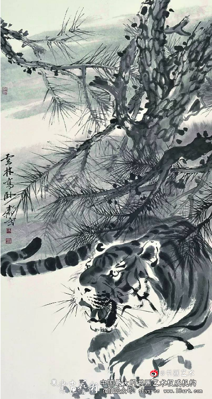 山西画家汤松翰专攻意笔墨虎。多年来,他一直在这块领域里辛勤耕耘。他喜爱虎的端庄与慈祥,更崇尚虎的威仪与尊严。老虎那独来独往的清高与傲岸、不欺小凌弱的博大与仁爱深深地感染了汤松翰,使他由爱虎变为绘虎,对虎画也由喜爱变为痴迷。他笔下的虎已不是对真实虎的简单写生,而是由情生发出来的意笔虎。他的虎画既散发出浓郁的北国气息,又蕴涵着深刻的人文内涵。汤松翰写意虎图&nb...