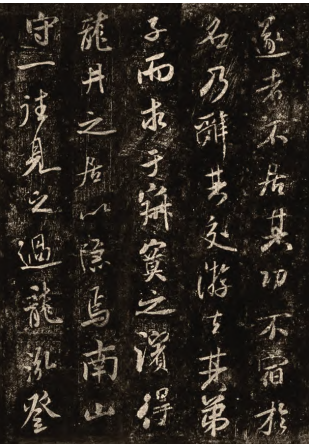 米芾临摹前贤的经典法帖,并不是全盘皆收,他化裁众字,为己所用,在意趣上注入自己的思想。他擅从字的势来加强笔画的形,在继承“大王”笔法和结字的基础上,又更多地吸收了“小王”的笔势和字势的姿态,并逐渐形成符合自身创作风格的特点。他以刷笔取势,直爽而挺洁,尤对“二王”很多行笔和字势进行了改革。如米之《方圆庵碑》(图4),虽取法“大王”,却又有别于“大王”,得颜之笔法而参以己意。