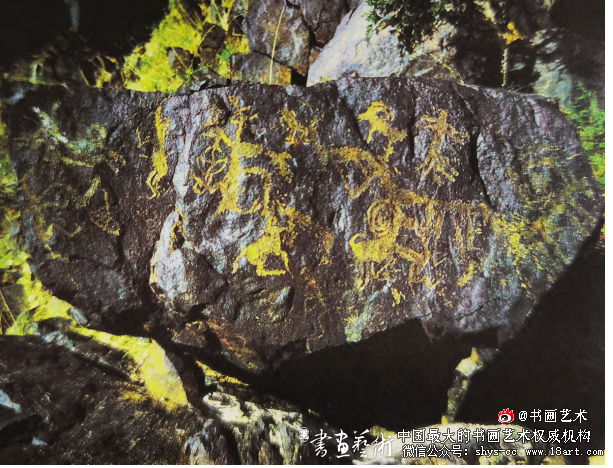 云南沧源地区原始时期岩画《舞蹈牧放战争图》和广西宁明县明江岸边战国至东汉时期岩画《祭神舞蹈图》则在单纯描绘围猎活动的基础上更进一步,将人类劳动生活与祭祀祝祷的场景作为描绘主体。通过观察两幅作品中人物形象的塑造,我们可以看出其身体动势有着异曲同工之妙,而《祭神舞蹈图》中人物体态比《舞蹈牧放战争图》中的更加舒展、规范,并以整齐的形式排布于画面之上,舞姿中蕴含热烈奔放的形式美,反映出体育精神与艺术表现的初步结合。