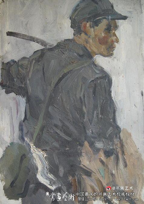 肖峰老汉(42.2x31.6cm)纸上油画1976年