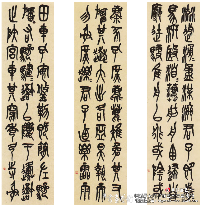 吴昌硕 临《石鼓 文》局部一、 二 、三
