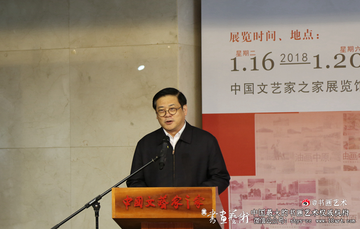 徐里书记在开幕式中谈到,中原文化博大精深、内涵丰富,河南美术历史悠久、特色鲜明。近年来,河南美术界更是活动不断、捷报频传。2016年,河南组团在北京、太原成功举办了“中原风”“中原画风”系列展,给我们留下了深刻印象;2017年又在安徽合肥、河北石家庄、四川成都成功举办了“中原画风·河南省优秀美术作品巡展”,在各地吹起了“中原风”,大家仍记忆犹新;刚刚进入2018,河南美术界又给我们带来了的“油画中原——十年回顾展”,充分展示中原美术的实力、影响力和创作成果。这些成绩,得益于河南省文联、河南美协的正确领导和河南美术工作者的辛勤努力。中国美协全力支持各省市美协、各专业艺委会的活动创新和艺术创新。今天我们举办“油画中原——十年回顾展(北京展)”,回顾河南美术发展历程,展示中原油画创新成就。目的就是鼓励那些长期“深入生活、扎根人民”、始终坚持“以人民为中心”的创作导向的美术工作者,坚定文化自信、坚持正确创作导向。希望全体美术工作者要不忘初心,以习近平新时代中国特色社会主义思想为指导,自觉履行使命担当,大力推进文艺创新,为实现中华民族伟大复兴的“中国梦”作出新的更大的贡献。