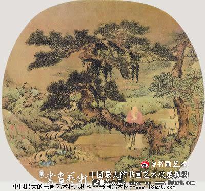 我们现鉴赏的这幅《松泉高士图》(见右下图),与大家熟悉的《寒江独钓》、《风雨归舟》、《孤帆远影》一样,都是表现高士隐逸题材的画作。 《松泉高士图》为绢本设色,纵26厘米,横27厘米,现藏于辽宁省博物馆。该作为团扇形构图。这种构图形式始于两宋。它与常见的横式、竖式构图不同,视觉上给人一种圆融...